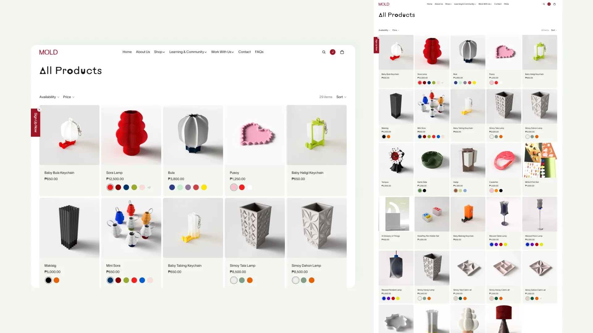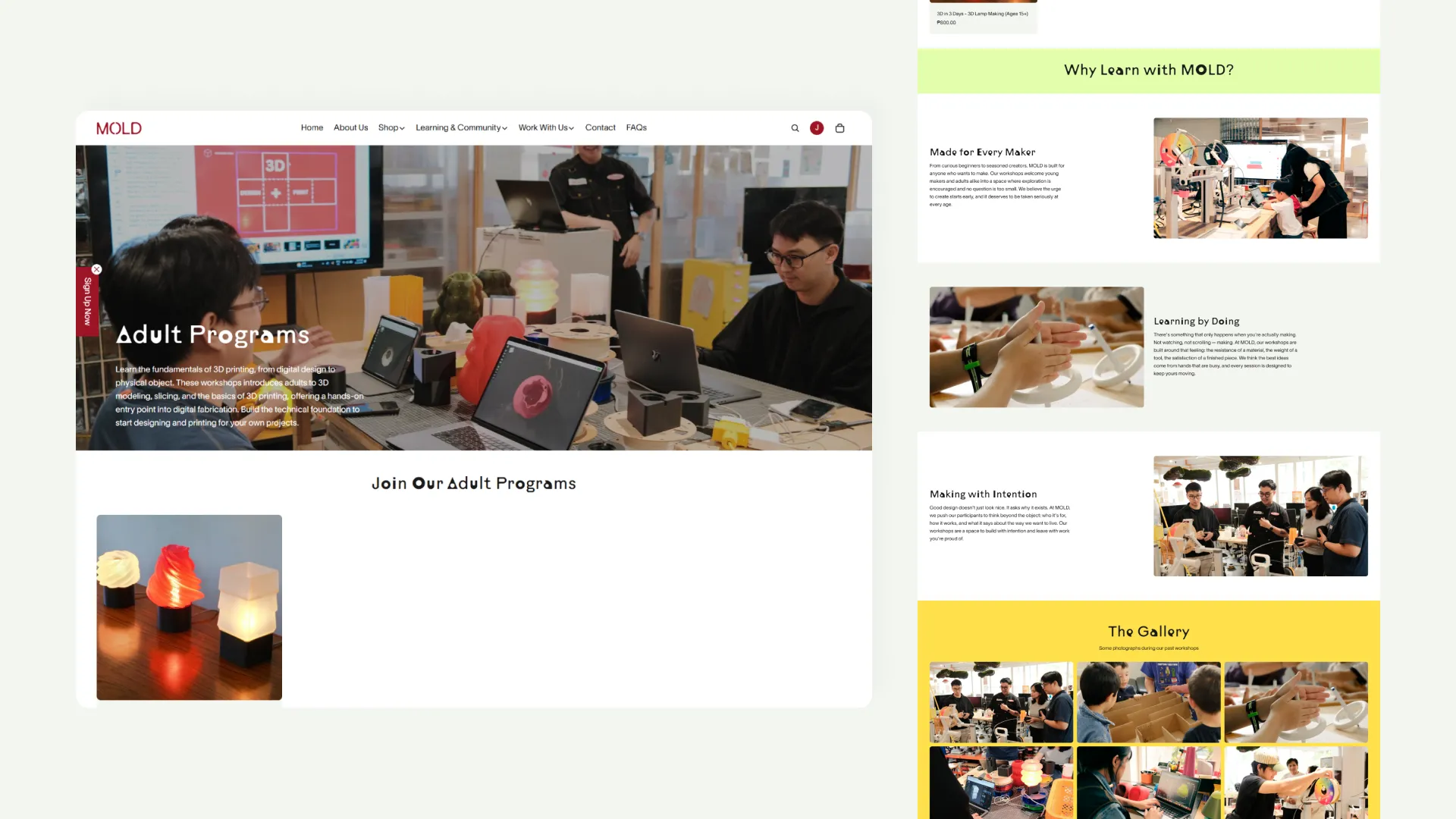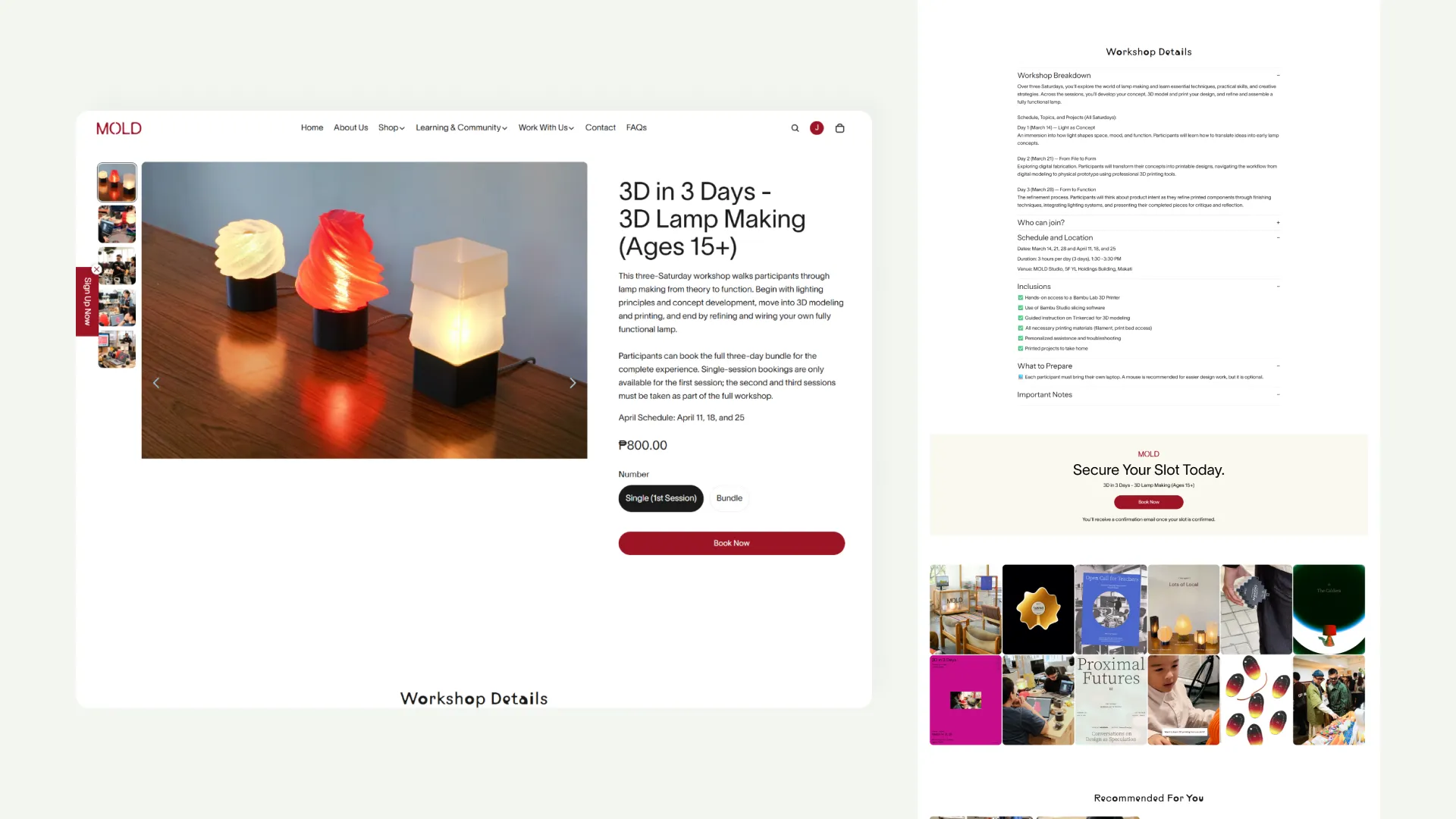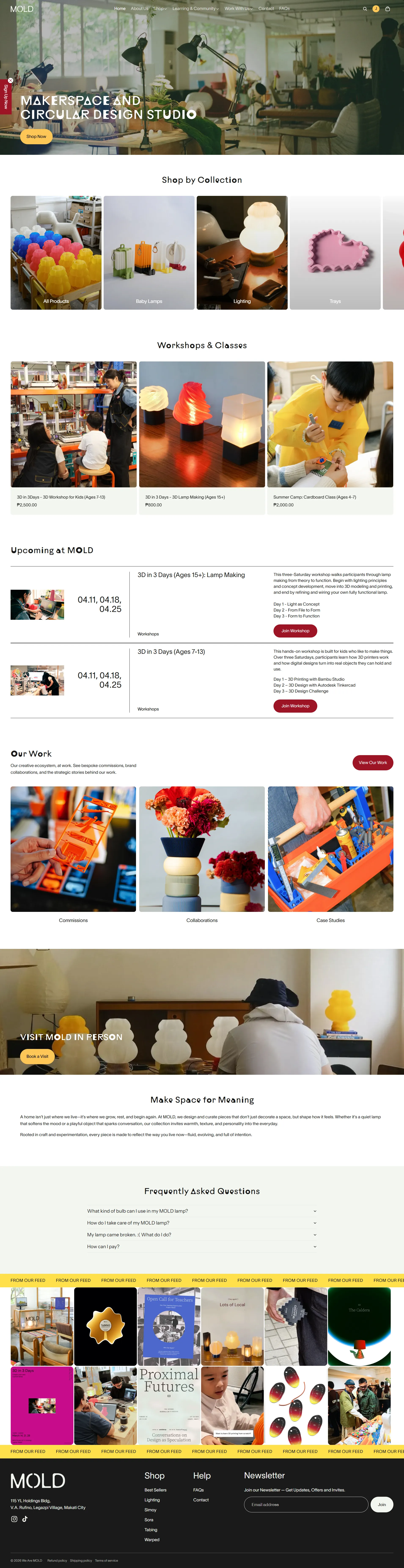 A multi-functional e-commerce site for a Makati-based 3D printing studio. Key contributions included customizing a Shopify theme to support diverse product types—ranging from 3D lighting to workshop bookings. I focused on enhancing the site’s functionality by integrating a booking app, managing product variants and types, and optimizing the mobile experience for a design-conscious audience.